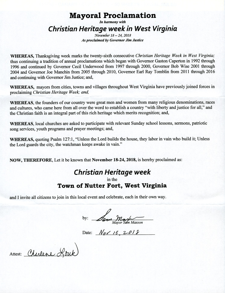 WHEREAS, The Christian faith was central to official American life during the periods of discovery, colonization, and growth, and our founding fathers sought God, His blessings, and His guidance as they established these United States of America as a free and independent nation; and
