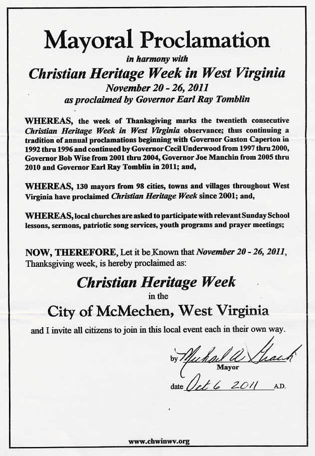 Christian Heritage Week in West Virginia