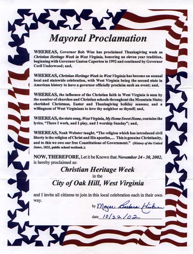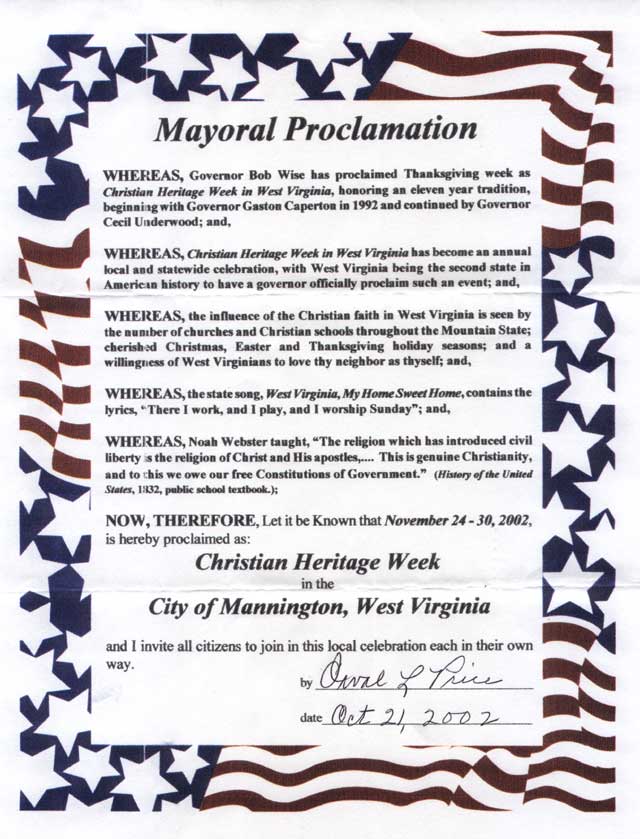 WHEREAS, these, and many other truly great men and women of America, giants in the structuring of American history, were Christian statesmen of caliber and Integrity who did not hesitate to express their faith;