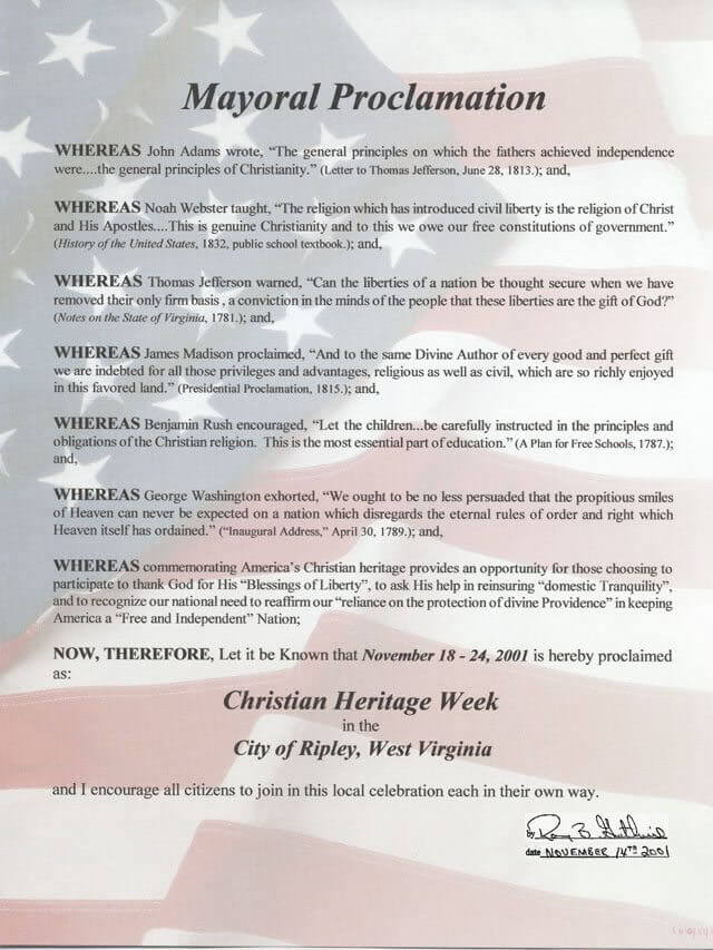 WHEREAS Noah Webster taught, “The religion which has introduced civil liberty is the religion of Christ and His Apostles…This is genuine Christianity and to this we owe our free constitutions of government.” (History of the United States, 1832, public school textbook.); and,