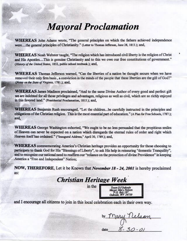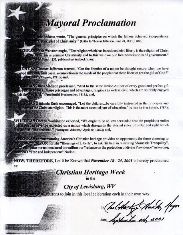 WHEREAS commemorating America’s Christian heritage provides an opportunity for those choosing to participate to thank God for His “Blessings of Liberty”, to ask His help in reinsuring “domestic Tranquility”, and to recognize our national need to reaffirm our “reliance on the protection of divine Providence” in keeping America a “Free and Independent” Nation;