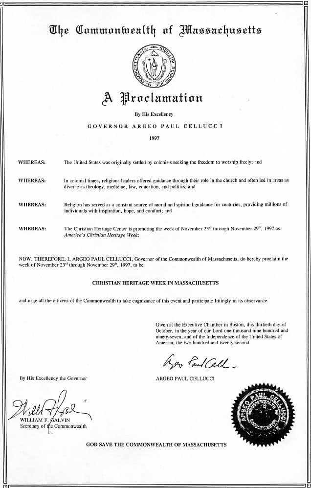 WHEREAS, the Christian heritage of our nation is recognized in many public documents written by our forefathers and reflected in the practices in our public institutions and by our government officials; and
