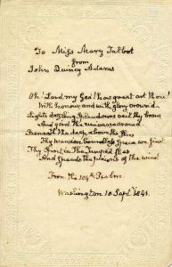 Shortly after John Quincy’s death on the floor of the House of Representatives in 1848, those nine letters were quickly printed as a book for all of America’s youth,