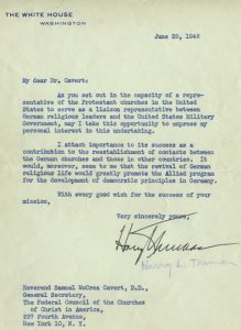 As you set out in the capacity of a representative of the Protestant churches in the United States to serve as a liaison representative between German religious leaders and the United States Military Government, may I take this opportunity to express my personal interest in this undertaking.
