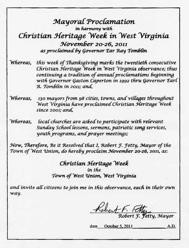 Christian Heritage Week in West Virginia