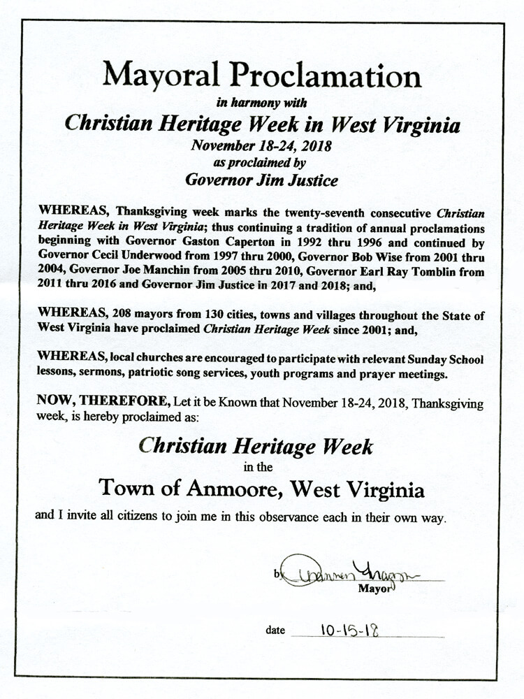 in the Town of Anmoore, West Virginia and I invite all citizens to join me in this observance each in their own way.
