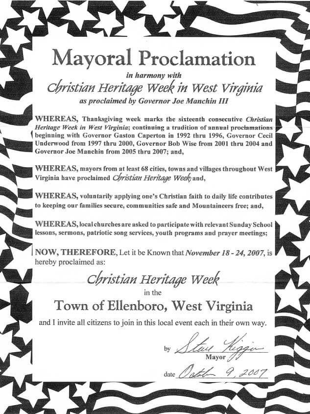 WHEREAS, mayors from at least 68 cities, towns and villages throughout West Virginia have proclaimed Christian Heritage Week; and,
