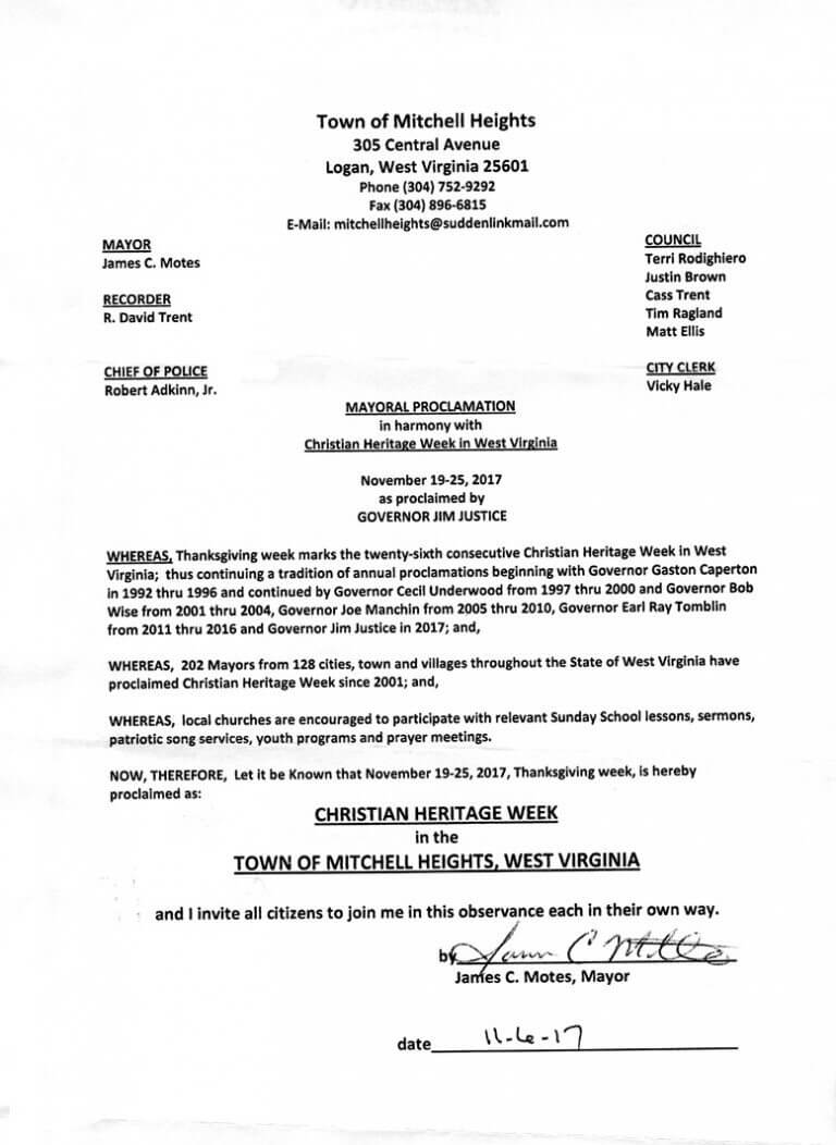 Christian Heritage Week in West Virginia